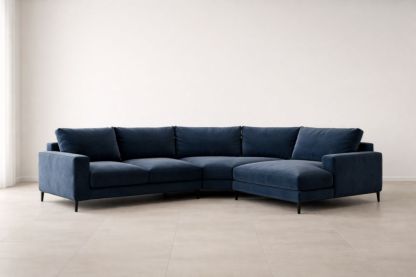 Dark Blue L-Shaped Polyester Fabric Sectional Sofa