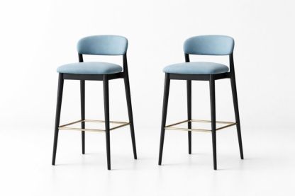Set of 2 Bar Stools with Black Metal Frame and Blue Polyester Fabric