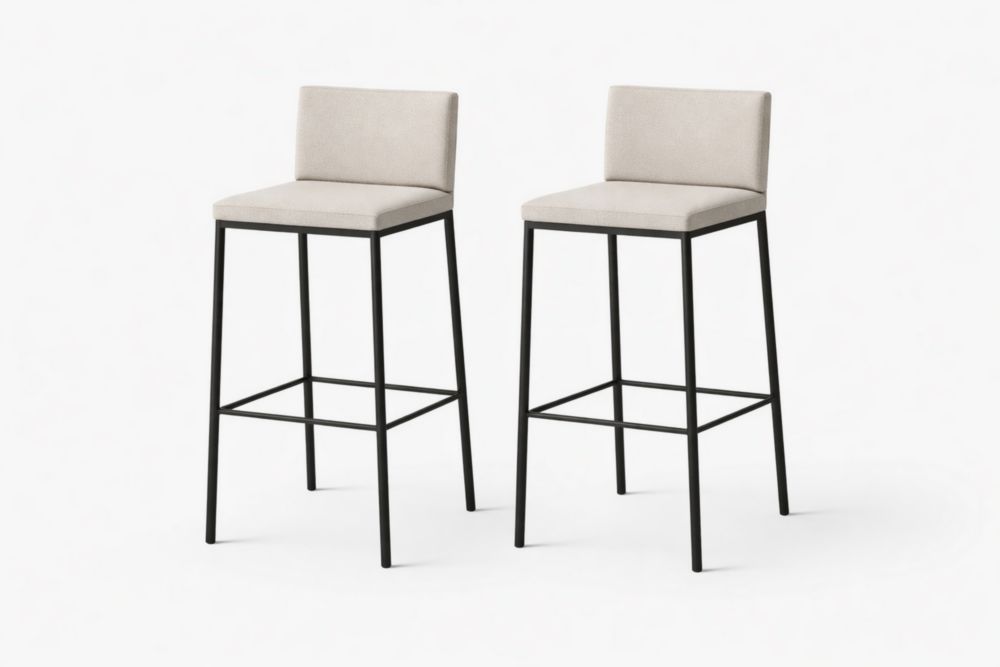 Set of 2 Beige Upholstered Bar Stools with Black Metal Frame