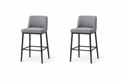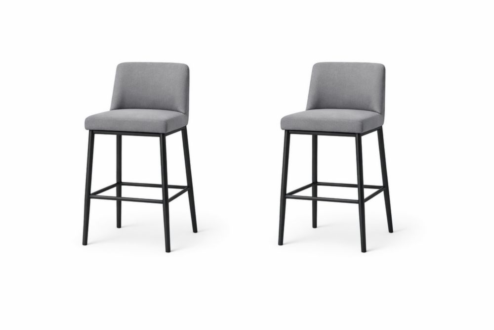 Set of 2 Grey Fabric Bar Stools with Black Metal Frame